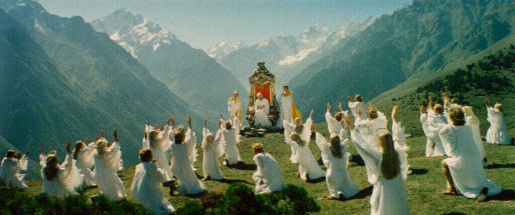 I just previewed The Devil’s Bride, which was rescued from oblivion by Deaf Crocodile. The film opens against a scenic backdrop befitting Julie Andrews in The Sound of Music, and has God on his throne surrounded by dancing angels who are tempted into an orgy of sensual pleasure right under God’s eyes. Oh, and did I mention, it’s a freaking Lithuanian rock opera from 1974! Honestly, if you don’t fall in love with this film in the first five minutes like I did then check for a pulse, you may be dead.