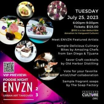 Join Vanguard Culture at The Soap Factory in Logan Heights for a VIP Foodie Night with ENVZN Urban Art Takeover, featured Visual & Performing Artists.