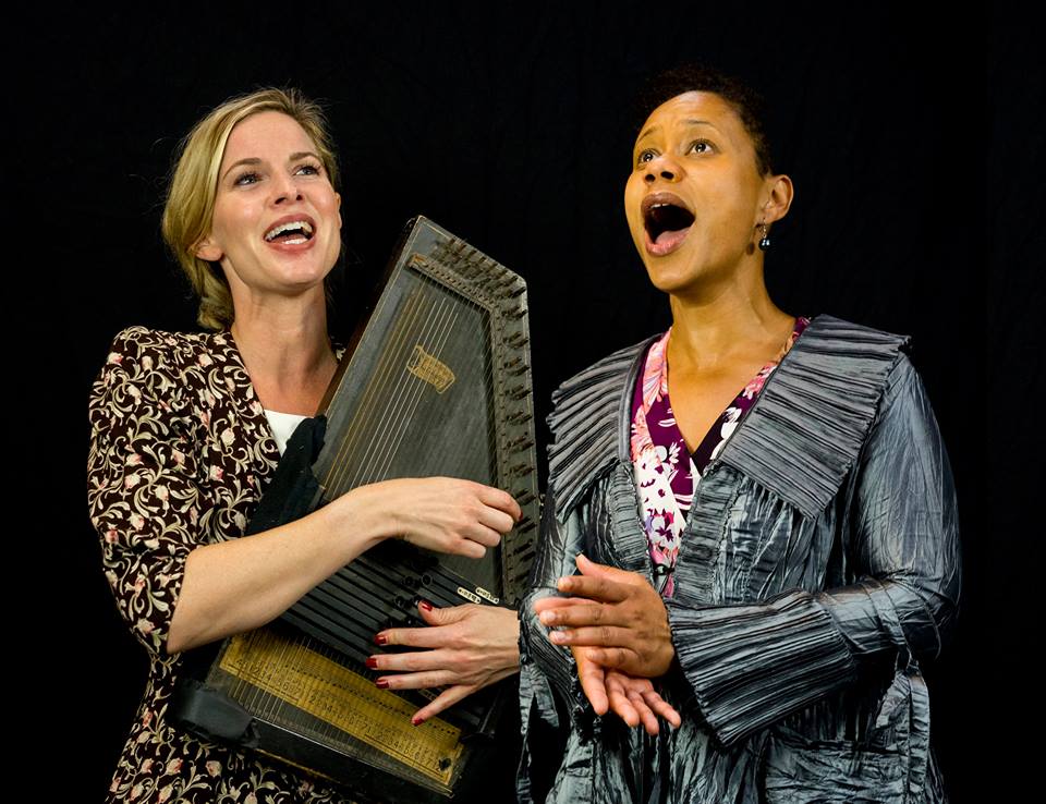 Featuring a blast from the past of some of the “Greatest Hits of American Folk Music,” the play turns on the dueling folk traditions of white, privileged “Susannah Mullally” and black, imprisoned “Alberta ‘Pearl’ Johnson.” Each takes her turn performing their favorite selections from the American Song Bag, as Susannah hunts for her ticket to academic stardom among Pearl’s repertory of slave-era tunes. Exchanging jibs and jabs like master chefs sacking the family cookbook in a cook-off, the two soon drop the recipes & begin ladling out dollops of their aggrieved pasts. The dialogue is sweet, sour, smart and saucy, but the singing is the thing that eventually draws them into a life-changing cultural encounter, culminating in a trip to New York City, where Susannah takes Pearl on parole to perform for the city’s best & brightest. There, Susannah surprises Pearl with a compromising request that leaves the audience gasping & wondering, “What did we just see?” What I saw was a telling moment of truth muting the music of reconciliation sung so deeply before.