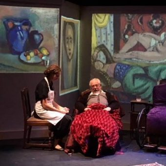 Not good enough for Playwright Jesse Kornbluth. His “The Color of Light,” produced by Vantage Theatre, in association with Talent to aMuse, starts as a true story of war. It is 1942 in Nice, France, part of the Vichy Regime of the defeated nation under Nazi occupation. The elderly Matisse lies in his studio thinking he is dying and reduced to cutting out pieces of paper as his last creative act. He is in artistic refuge, along with other artists like Pablo Picasso, who in a cameo appearance, ashamedly confesses he is left writing plays. Unspoken is the stifling effect of a totalitarian state of siege. Through skillful wall projections of World War II film footage, Director Robert Salerno makes us feel it too.