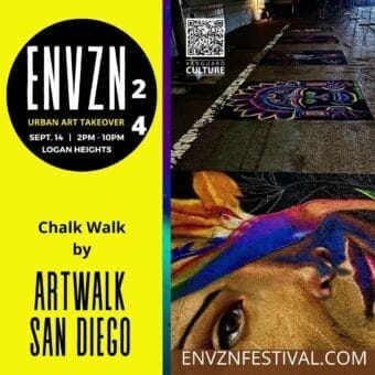 Chalk Walk is presented by ArtWalk San Diego, the producers of San Diego’s well- known fine art festivals, as well as the two-year-old festival, Bella Vita Fest, which showcases chalk art on the pavement in Little Italy, October 19 and 20, alongside a full palette of Italian cultural elements. Four Southern California chalk artists will create temporary chalk painting masterpieces on the street, created before your eyes during ENVZN 24. Chalk artists are; Cecelia Linayao, Meg Beverly Canilang, Jennifer Ripassa, and Sharyn Chan.