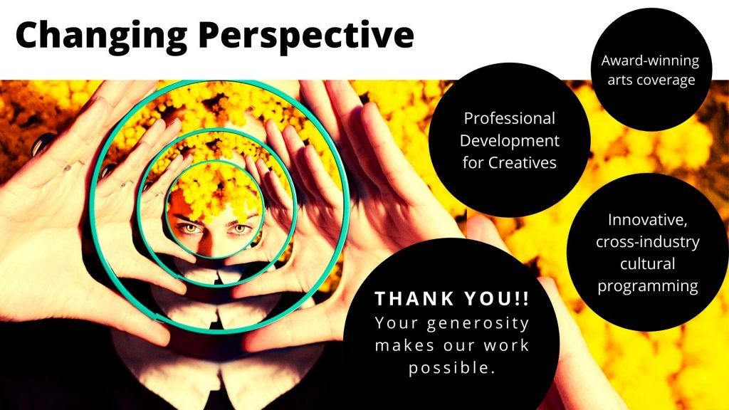 THANK YOU FOR MAKING OUR WORK POSSIBLE! IN APPRECIATION OF YOUR GENEROSITY, PLEASE ENJOY THIS SAMPLING OF CREATIVE CONTENT BY SOME OF OUR FAVORITE VISUAL, PERFORMING, AND CULINARY ARTISTS FROM AROUND THE WORLD.