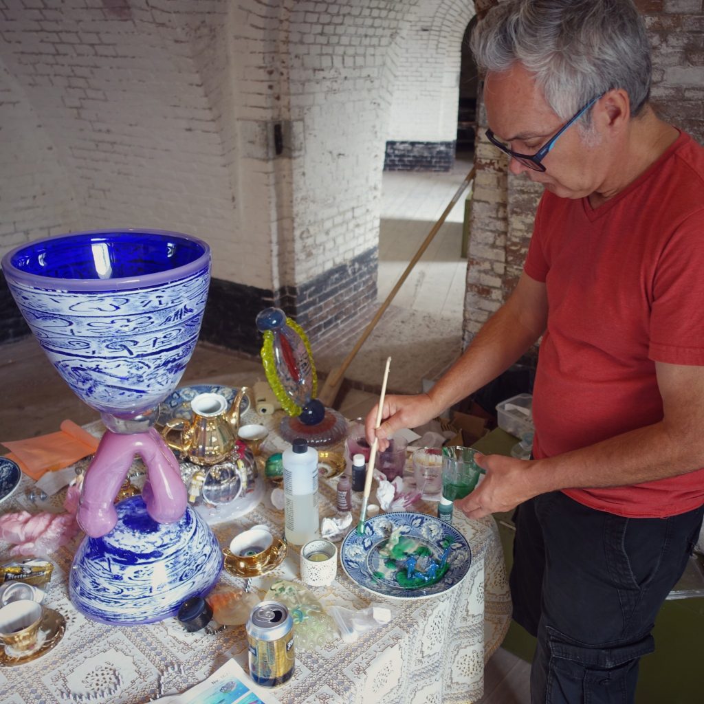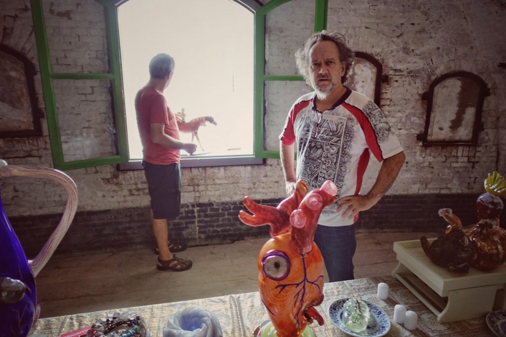 The festival had invited thirteen artists and designers, pairing each with master glass blowers from several European cities known for their glass technique. For six days, master glass blowers would assist the artists, and their work would be exhibited at the historic Kunst Fort, built in 1847. The brothers were unique in this selection as they are both artists and glassblowers. They were excited to be working with the other master blowers, many of whom are longtime friends and colleagues. With six days of glass blowing and a 50-pound suitcase of random trinkets, it was going to be a De La Torre fly-by-the-seat-of-your-pants extravaganza.