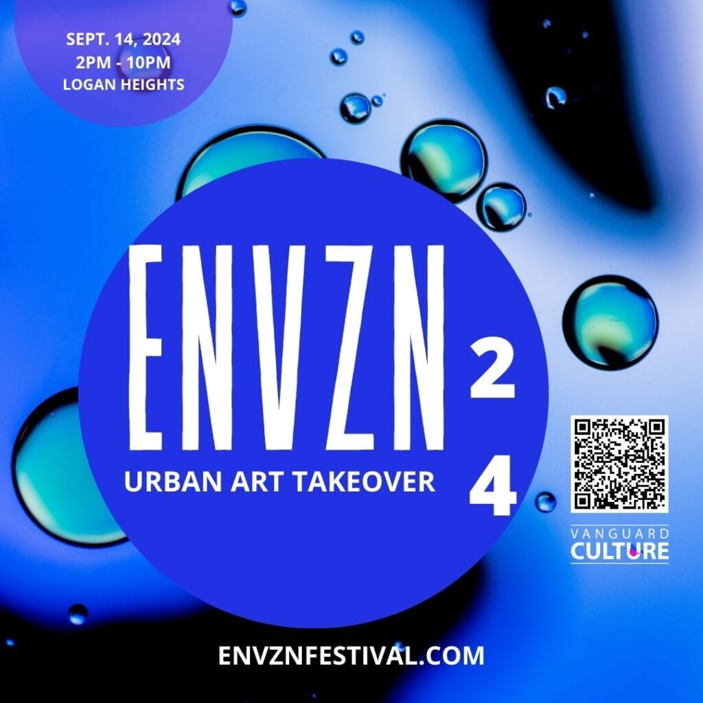 –Date: Saturday, September 14th, 2024, 2pm-10pm – ENVZN24: Urban Art Takeover – ALWAYS tag @envznsd , @vanguardculture , and @culturallysavvy in your posts – Post 1-2 times a week up until the event – Tagline: Be Part of Something Special – Website: bit.ly/ENVZN24 or www.ENVZNFestival.com – Hashtags: #ENVZN24 #ENVZNUrbanArtTakeover #WDC2024