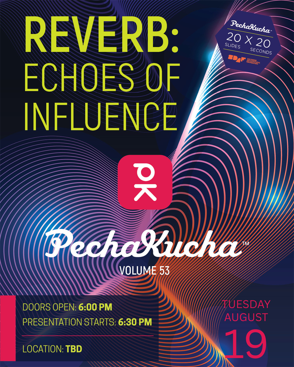 PechaKucha Night Vol. 53 returns August 19 with the theme Reverb: Echoes of Influence. Experience a dynamic evening of 20×20 presentations as speakers explore the moments, movements, and mentors that shaped their creative paths.