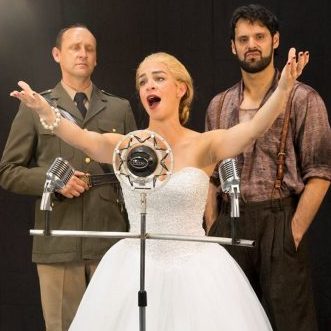 Countering Evita, and providing a slightly sarcastic commentary is Ricca’s Che, played with barely restrained energy and frustration. Woodhouse and Ricca have wisely chosen not to paste the iconography of Che Guevara (also an Argentine), on the character, the movie version not withstanding. There are hints in Rice’s lyrics that the character is based on the revolutionary, but ‘Che” in Argentine Spanish is equivalent to “buddy” or an interjection, and as here, Che stands in for the Argentinian Everyman. With that in mind, Ricca’s powerful vocals would be richer if his Che had a bit more nuance in his presence.
