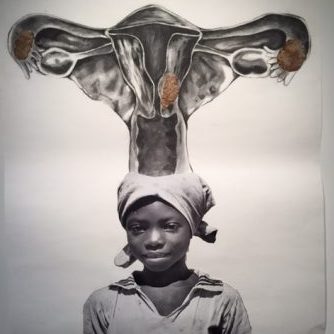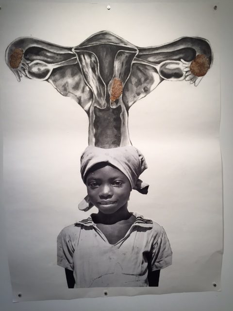 Chung, whose work focuses primarily on Carribean island nations, how outsiders perceive these islands in contrast to the ‘real’ lives of the inhabitants, and migration and labor issues stemming from colonial and postcolonial influences. Her work which is expressed via appropriated images from historical documents are collages about African American women’s’ labor, and midwifery. Chung uses the image of the uterus as a metaphor for the perceived value placed on women in Carribean cultures together with the land, to elicit narratives for the viewer to interpret for themselves.