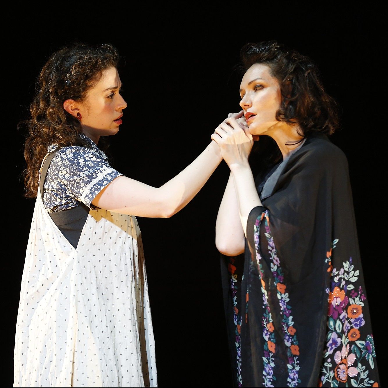 Photo credit Adina Verson (left) and Katrina Lenk in La Jolla Playhouse’s world-premiere production of INDECENT, co-created by Paula Vogel and Rebecca Taichman, written by Paula Vogel and directed by Rebecca Taichman, running November 13 – December 10 in the Mandell Weiss Theatre; photo by Carol Rosegg.