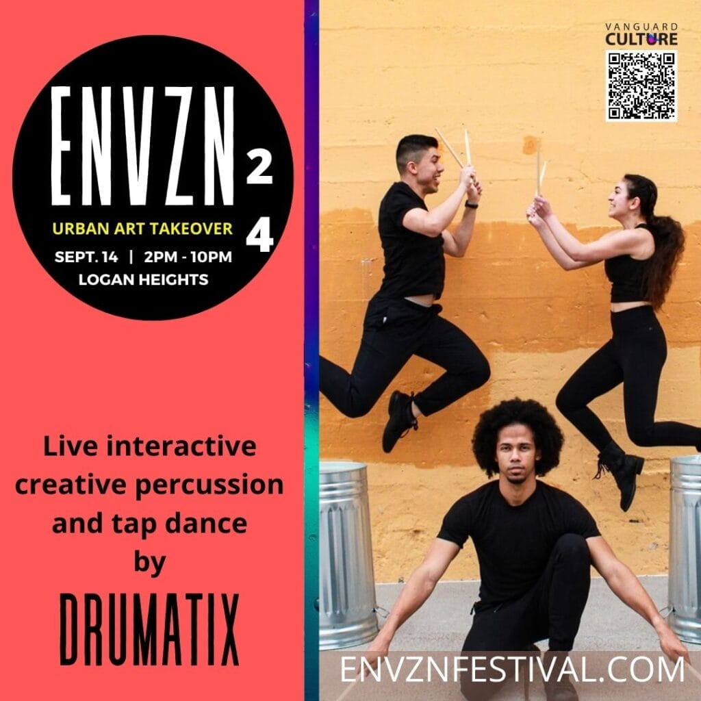 DrumatiX, a tap dance and creative percussion company based in San Diego will present an interactive and immersive performance aimed at captivating audiences with a fusion of tap dance, body percussion, drumming, and inventive utilization of found items, technology, and clowning. This family-friendly performance will be infused with the richness of Middle Eastern percussive styles and the vibrancy of world beats, showcasing a tapestry of rhythms that reflects the beauty and diversity of our community. A joyful and unforgettable experience for all ages and backgrounds that transcends language barriers and fosters community.