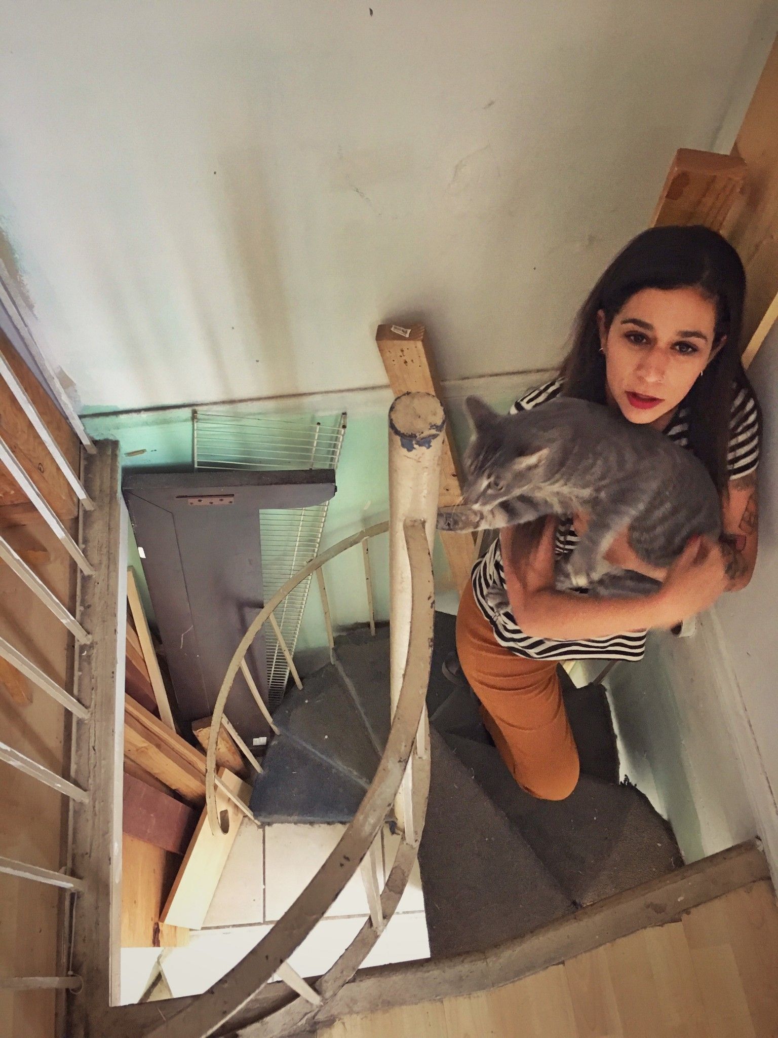 Panca wrote: “He said something like, ‘This is hideous! With so much beauty why would you pick this…’ And I said, ‘Well it’s your opinion, and maybe you were lucky to live such beautiful things, but this represents something that I see coming and also going, like how easily we women can become savages just like men.’ Yes, I honestly wanted to climb down [the scissor lift] and throw a Goya book at him.”