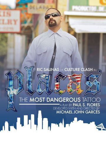The play is based on hours of interviews with gang members, intervention workers, and parents. Playwright Paul S. Flores created a bi-lingual narrative of fathers and songs, and the determination of one man to reunite his family after surviving El Salvador’s civil war, deportation, prison and street violence. The play documents one man’s efforts to leave that life and reunite with his family. Fausto Carbajal, aka “Placas,” a former gang member, Salvadoran immigrant, father is the narrator of this gripping tale. He is covered in tattoos, representing the bonds and actions of his time. Starring as Fausto is the incredible Ric Salinas, a native-born Salvadoran and founding member of the acclaimed performance group, Culture Clash.