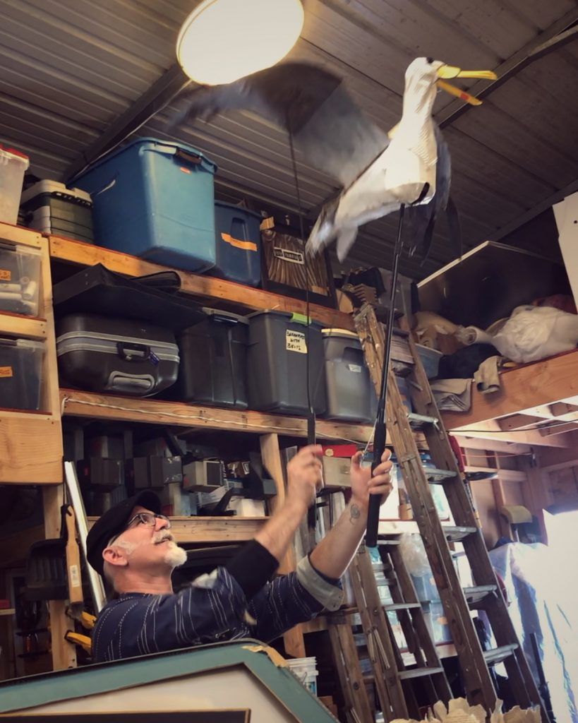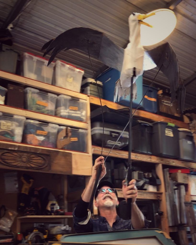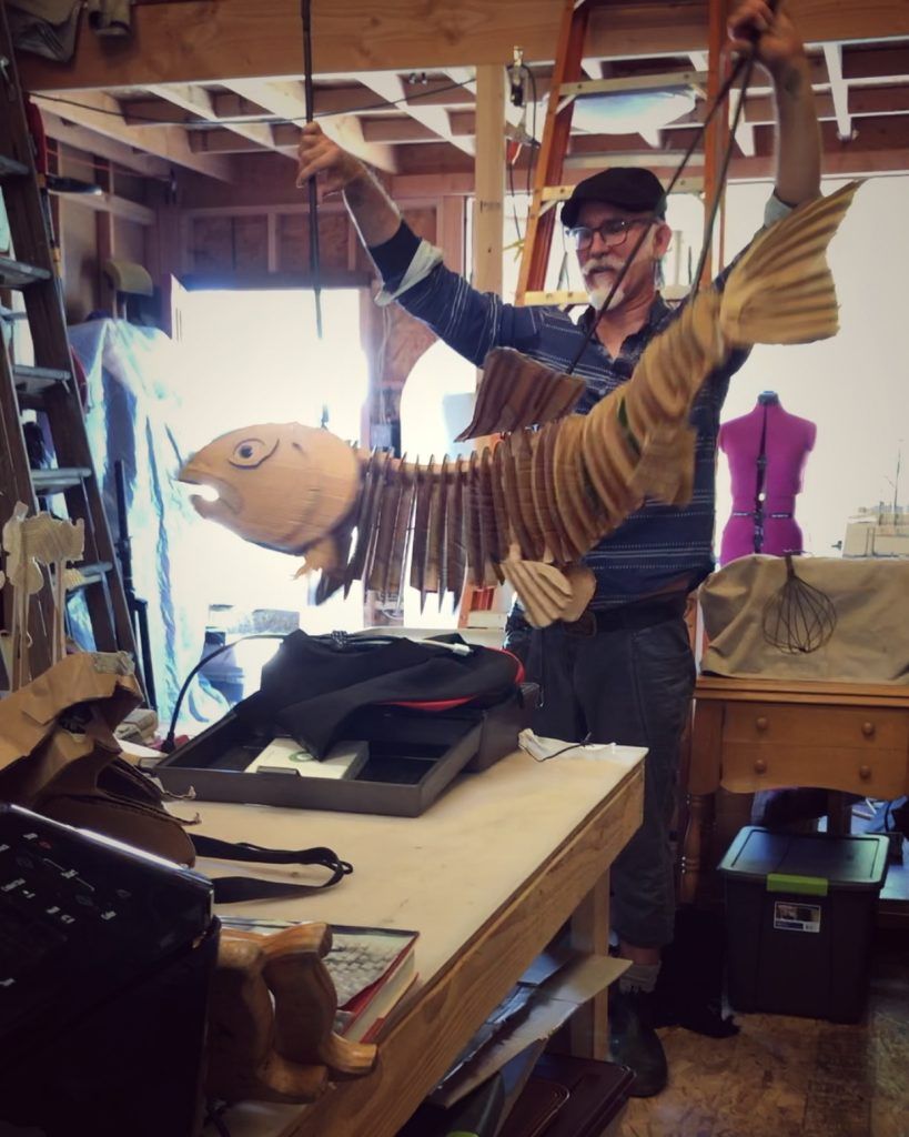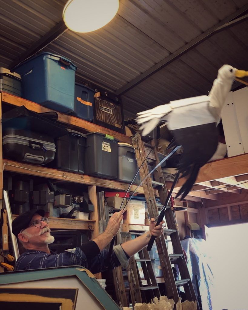 “I like making things out of trash,” says Iain Gunn of Animal Cracker Conspiracy, the award-winning San Diego puppet company. He hoists a seagull made of scraps of garbage into the air on the end of two sticks, happily clapping its wings. It lurches up and down in a staccato rhythm as the wings spread and fold, a seagull’s recognizable grin masterfully molded into the beak.