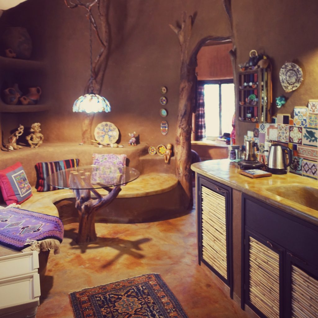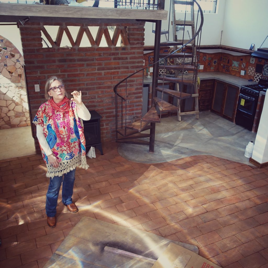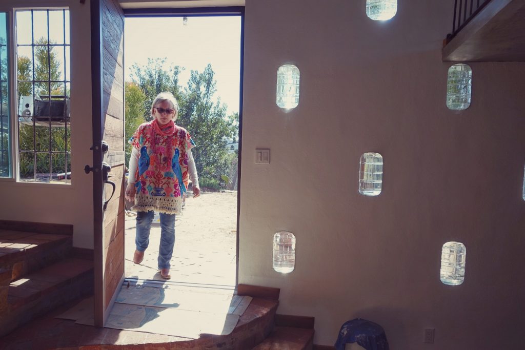 We walk outside to have a look at the gorgeous domed studio she is building for an artist-in-residency program she hopes to start this summer. Five-gallon glass water jugs filled with water punctuate the walls, refracting light-arches across the newly bricked floor. There’s plenty of space and privacy for an artist to create, and in the artisanal tiled kitchen, she muses that a chef might one day enjoy a residency too. I realize this is yet another way that Poeter is creating space for people to be creative in— in a very personalized and intimate way. Whether it is giving visitors to her studio an opportunity to work with their hands, creating a sacred space for a sweat lodge ceremony, or hosting her own artist residency; her personal and intimate approach impresses on me the importance for her, of creating community, slowing the verve of life down so we have time to see, touch, and interact with more than a passing smile and a glass of wine at a gallery opening. An integral part of her creative process seems to be bringing people together to connect, to work with their hands, spend quality time together, sharing a deeper part of themselves, possibly to make sense of, and balance the chaos of modern life.