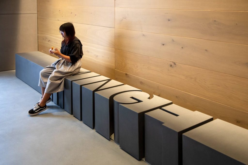 The building’s design subtleties continue as one moves through the first and onto the second floor. The staircase that makes this transition possible is adorned with the newly reinstalled Dale Chihuly glass sculpture, that serves as a natural chandelier. But the staircase itself has an interesting design feature. As you go up the final rungs, feel the change in texture and look at the steps under your feet. You will notice the final bit of the stairs move away from the Black Forrest white oak that covers the entirety of the museum, to a set of concrete steps, signaling a change space.