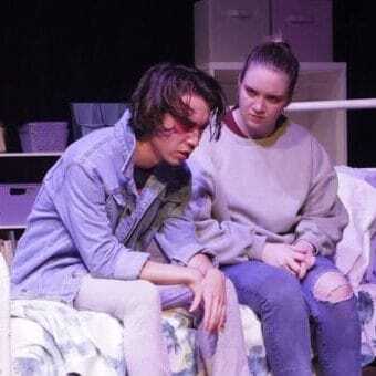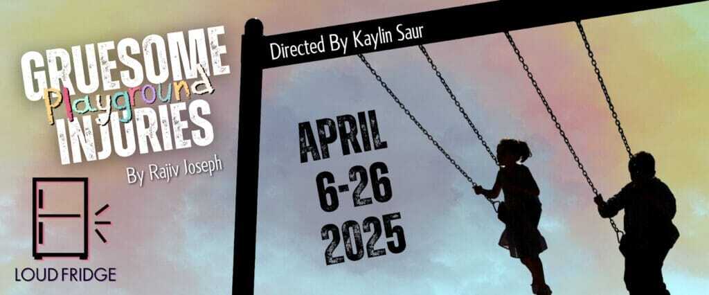 Gruesome Playground Injuries is not real life. It’s a play about real life. The performers are with Loud Fridge Theatre Company. The location is Tenth Avenue Arts Center.