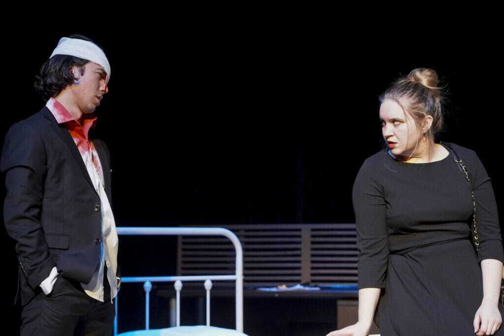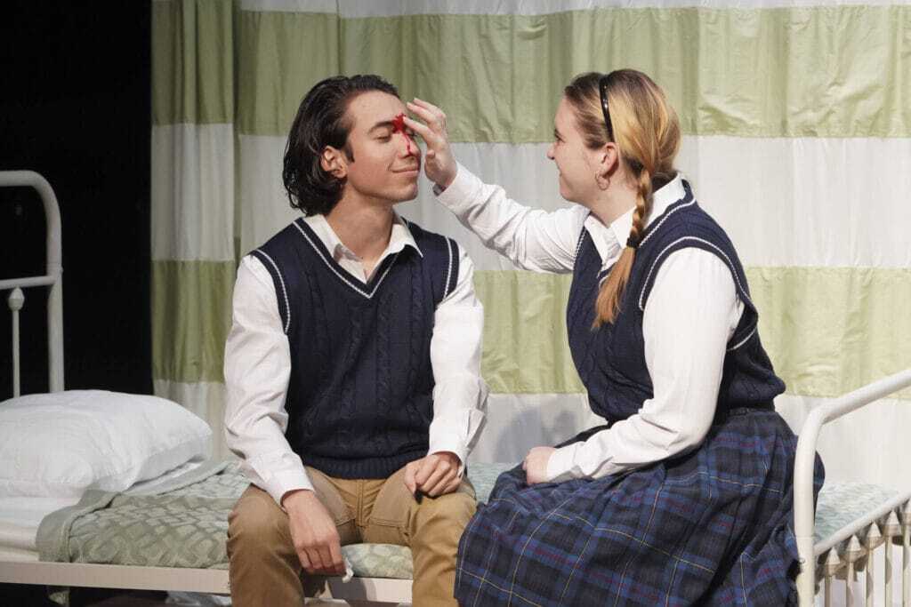 It was really crazy when we got into technical rehearsals, when we had the actors wearing the full makeup, the way that it changed what this story means to see the fake blood, to see the bruises, to see all these things. It really changes the context of some of these scenes to realize that there is a bodily injury happening as well here. So yeah, I’m excited for you to see it. It comes together as a really interesting piece that way.