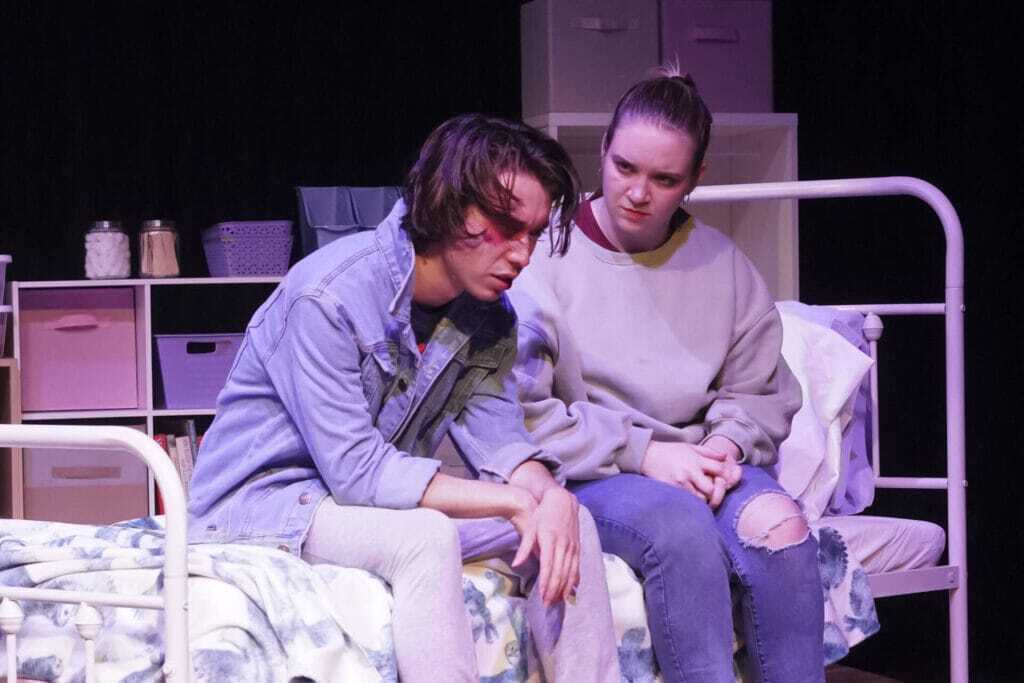 Absolutely. Absolutely. How much do I listen to other people is always, I think that’s a thing we just deal with as human beings all the time. What is in my head and what is outside and what is real? What is objective? Does it matter? Because we only live in our own heads. The other thing that’s worth noting is that this play does deal with some heavy mental health themes. Kayleen, as a character is, it is in the text from the word go, deeply depressed, and we do have an onstage depiction of self-harm in this show. There is a content warning at the box office for people. And so I also wanted to bring in Hella Good Therapy because that’s a real thing that people deal with, and it is not something that is very often depicted on stage, and it’s frankly not something that is very often depicted without judgment.