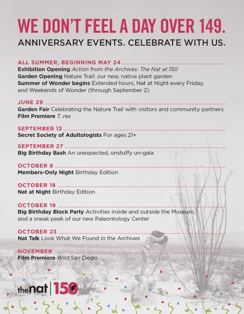 In 1874, San Diego’s official census count hovered around 3,000 residents. A small group of local amateur naturalists formed the San Diego Society of Natural History. This year, The San Diego Natural History Museum celebrates its 150th anniversary! Our current county population (of 1.39 million people) is invited to its Summer of Wonder events and celebrations to ring in the milestone birthday, culmulating in an “unstuffy” Big Birthday Block Party on October 23, 2024.