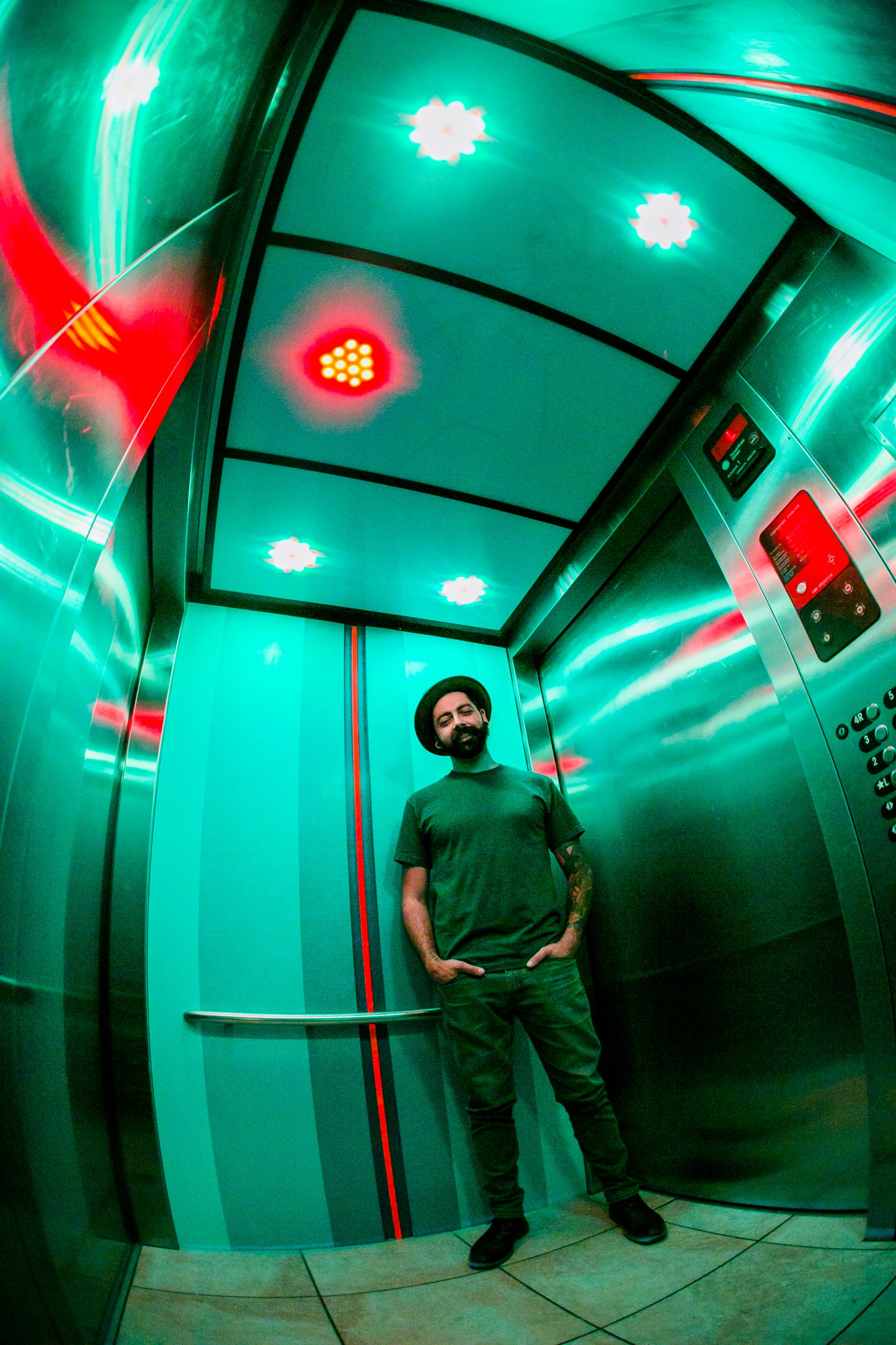 One particular artwork allows the viewer to be interactive, pulling them from simply viewing to a physical interaction that sparks thoughts of alteration, beauty, and the elements of personal appreciation. I am a sucker for a thoughtfully presented interactive artwork, and this piece certainly entertains as much as it creates aesthetic. Corrales’s elevator installation is something of an experience. Not only do the colors ebb and flow with the movements of the elevator, but they play off the rotating space and ask that the viewer truly pay attention. The panels that have been installed could easily be mistaken for their true interior however, they are painted with the precision required to immerse the viewer in a manipulated space. A place that allows for depth, movement, and questioning. The Lobby Gallery exhibition will be on view through July 29, 2018.