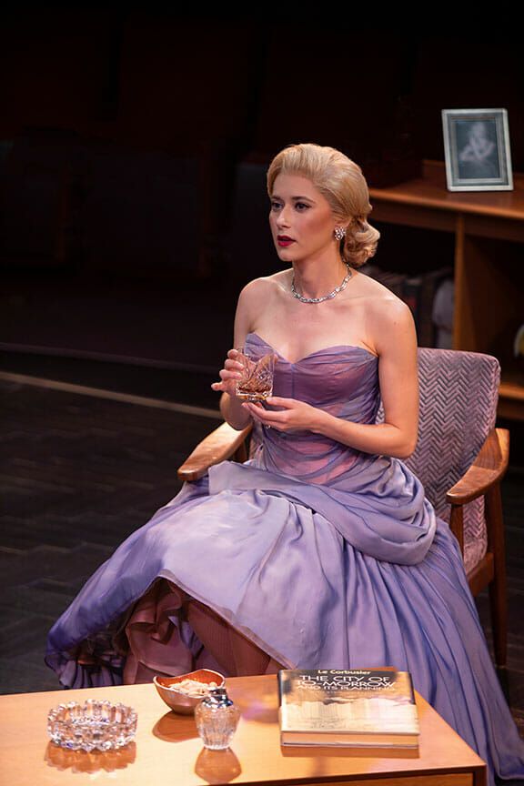 Dial M for Murder gets an A+ for adaptation – and kudos to The Old Globe for mounting this hot summer thriller. While theaters can count on name recognition to sell tickets, it can be a double-edged sword as audiences often expect a replica of the film or novel. (Just ask the writers of Harry Potter and the Cursed Child.) Thankfully, this update of the original 1952 stage show has all the best aspects of the famous 1954 Hitchcock film – gorgeous pacing, gorgeous dialogue, and a gorgeous blonde – with the heightened stakes of live theater.