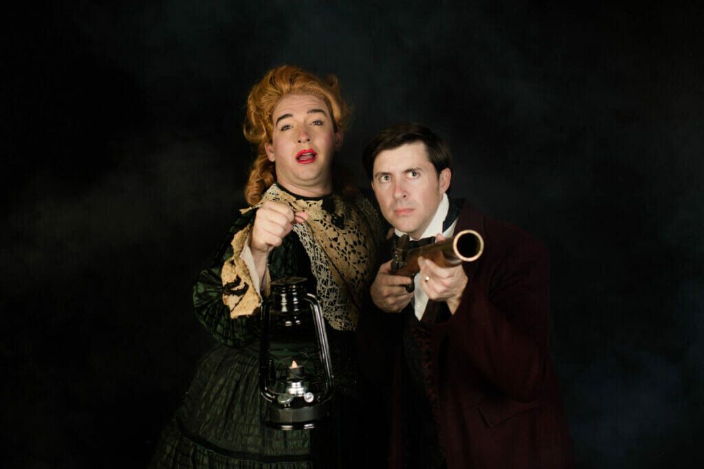 The opening night audience giggled, tittered, chuckled, cackled, and at one point barked. The Mystery of Irma Vep at Diversionary Theatre required every type of laugh and deserved its standing ovation. I say “required” because the campy humor milks every smirk into a guffaw and “deserves” because Bryan Banville and Luke Harvey Jacobs may be the hardest-working actors in San Diego this holiday season.