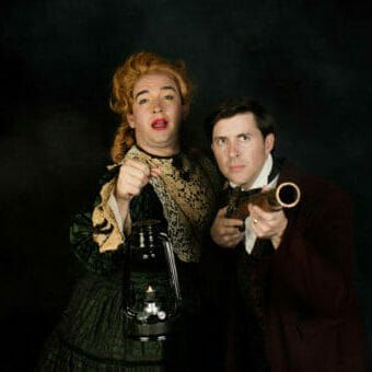 The two-hander Irma script – from the prolific and colorful Charles Ludlam – has not been produced in over 20 years primarily due to the all-out, dizzying pace it requires from its players. The gothic, old-timey horror and hilarious high-and-low-brow humor make for an exhilarating and exhausting experience. Banville and Jacobs have remarkable chemistry, marrying shrewdness and silliness with nods to their quick costume change efforts. Audiences will enjoy Peter Herman’s lovely wig work and Brooke Kesler’s costume details as the characters transform with every entrance.