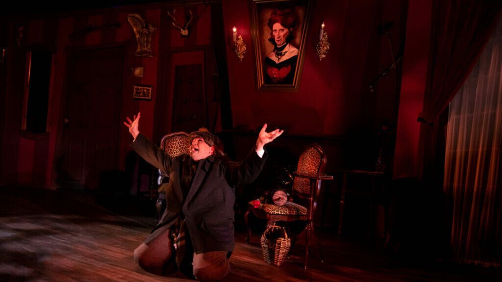 Diversionary’s brilliant community spurs on this high-octane, high-caliber show. This script should only be experienced alongside a loving audience, as it asks you to suspend your disbelief and giggle cathartically at the “unspeakable horror” of B-movie monsters and the symbols they represent. (Irma Vep was written during the HIV/AIDS crisis). Diversionary leadership is savvy and sincere in this, including participation games (Hiss when you hear a “gloriously bad joke”! Snap if something “gay” occurs!) The crowd cheered the popular Artistic Director Matt M. Morrow‘s opening night address.