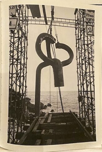 Jans recounted the engineering feat of the construction of this piece of art that lives on the edge of the sea. Placement required the laying of temporary rail track built onto rock in order to deliver the heavy piece of iron set directly onto stone. The beauty of the placement is that there are no anchoring supports required for this piece to live against the sea other than the magic of the big G, gravity itself. All engineer’s know from our physics training that the big G is a constant equal to 6.67430 × 10⁻¹¹ m³⋅kg⁻¹⋅s⁻², first measured by Henry Cavendish in 1798.