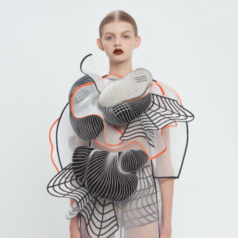 As a whole, the exhibition highlights the wide range of ethnicities, races and cultural backgrounds that make up the country of Israel and the innovative artists whose works give a glimpse of Israeli life characterized by their collective and personal memory, restlessness, resourcefulness and the influences of globalization. Beginning with The Scroll of Esther, known as the Megillah, Finials (1882), Torah cases (1914), the Bezalel School Rug (1910) from an arts and crafts school created in the early 1900s’and other religious objects, the exhibit opens into a bright and colorful space with secular objects, many of which were created in the last five years. Rich colors exude from garments and textiles, clay and porcelain pieces, wood, 3-D printed objects and those using recycled materials. Some metal and ceramic works are influenced by the simplicity of the Bauhaus school while others include gestural and abstract patterning. There is no particular Israeli style, rather a celebration of the creativity and skill of contemporary artists working and living in a country constantly challenged politically, socially, and economically and by the precariousness of its very existence.
