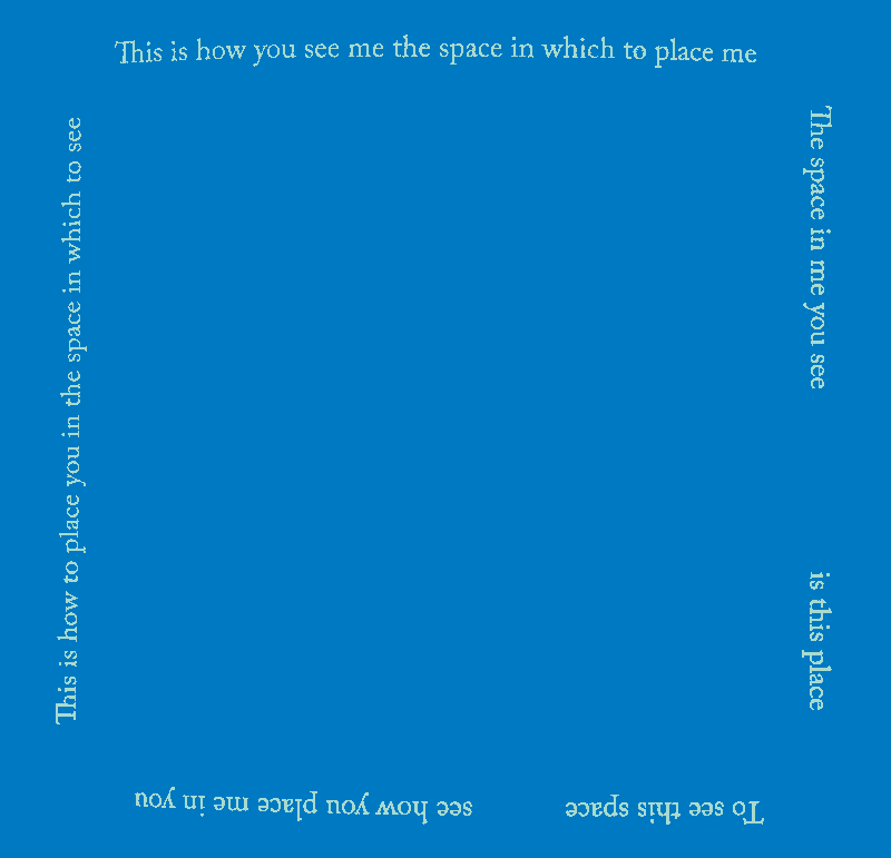 The title of Gibson’s exhibition, “the space in which to place me” is adapted from a poem written by a Oglala Lakota poet named Layli Long Soldier. That poem “Hé Sápa” is literally written around a block-shaped space.