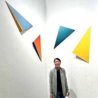 Nature always seems close to Fukuyama’s heart. In a public commission in the Arts District at Liberty Station in Point Loma, she created a large butterfly sculpture, a native garden, and educational messages designed to support Monarch butterflies. She refers to nature, but doesn’t imitate it. Her work is not overburdened with theory and explicit meaning but thoughtful and evocative. She works with perception, and our very Californian Light and Space, as her favorite artist James Turrell, Agnes Martin, and Robert Irwin have done. Like them, she would like us to slow down and take a second look, and maybe a third. What do we see? What do we see after the first look, and after the second or third? The viewer will be rewarded for looking closely and more carefully at Fukuyama’s work. There are more than three dimensions here to discover.