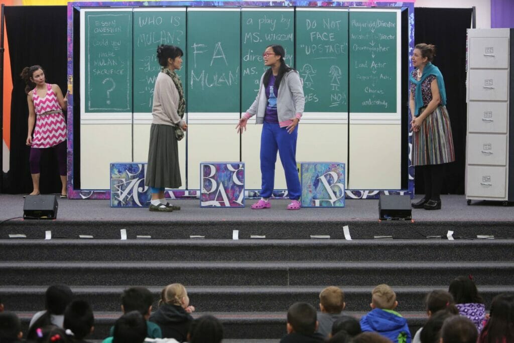 I heard this gem after my son saw his first play, Jin vs The Beach, directed by Jacole Kitchen. I did not cry, but I almost cried because, at the age of 5, he could experience the entire reason I love the art form. My kindergartner became an entertained, engaged, and empathetic audience member who could keep thinking – even after the applause – about the story and its life applications. I believe this is the purpose of theatre and part of why La Jolla Playhouse’s POP Tour is a blessing to our city’s schools.