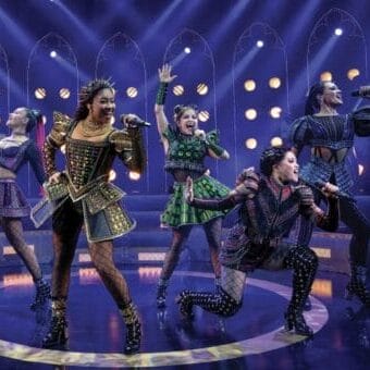 The musical has become a global phenomenon since its 2017 debut at the Edinburgh Festival Fringe. Conceived by Toby Marlow and Lucy Moss while they were still students, the musical retains the hysterical irreverence of a new work. It opened on London’s West End in 2019 and ruled for more than six years with no sign of abdicating its reign. While COVID-19 halted its Broadway opening, the show resumed in 2021, and has continued to run — helping signal Broadway’s post-pandemic comeback and reminding audiences why live theatre matters. (Though Universal Pictures brings a one-night-only cinema event in Australia on January 8.)