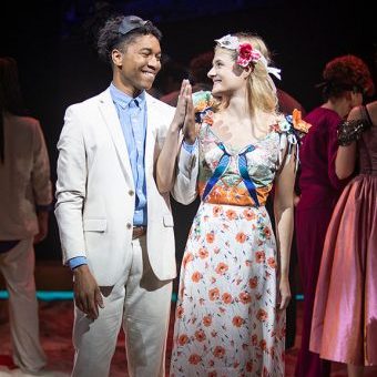 Aaron Clifton with his light teal T-shirt and dark shorts; and Louisa Jacobson with an airy navy-blue three-quarter sleeve blouse with tiny white polka dots and jean shorts. Each one, respectively, the eponymous lead in the Old Globe Theatre’s rendition of Shakespeare’s “Romeo and Juliet.”