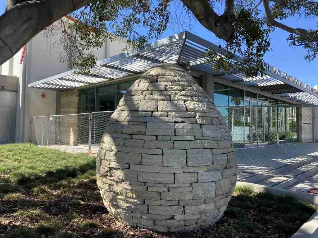 And for the community, the new MCASD is so inviting with many works open to the public to enjoy on our grounds. We refurbished our iconic “Pleasure Point” (2006) sculpture of boats and surfboards by Nancy Rubins. We have exciting outdoor sculptures like the “Three Cairns” (2002) by Andy Goldsworthy and the “Hammering Man at 3,110,527” (1988 by Jonathan Borofsky.