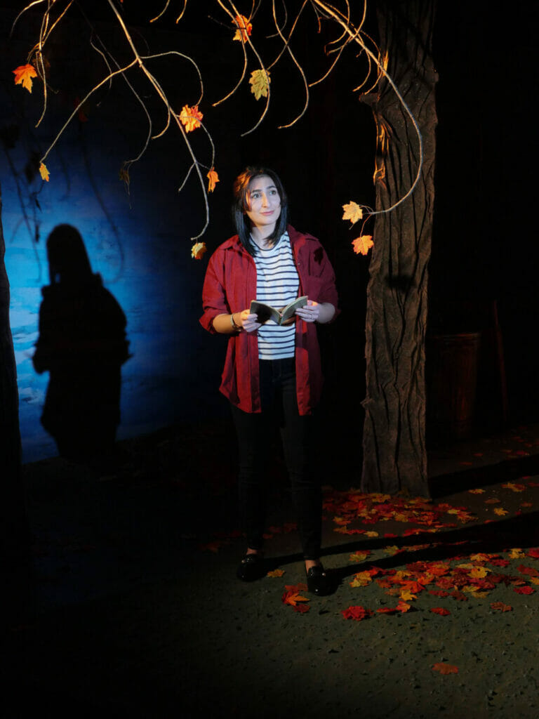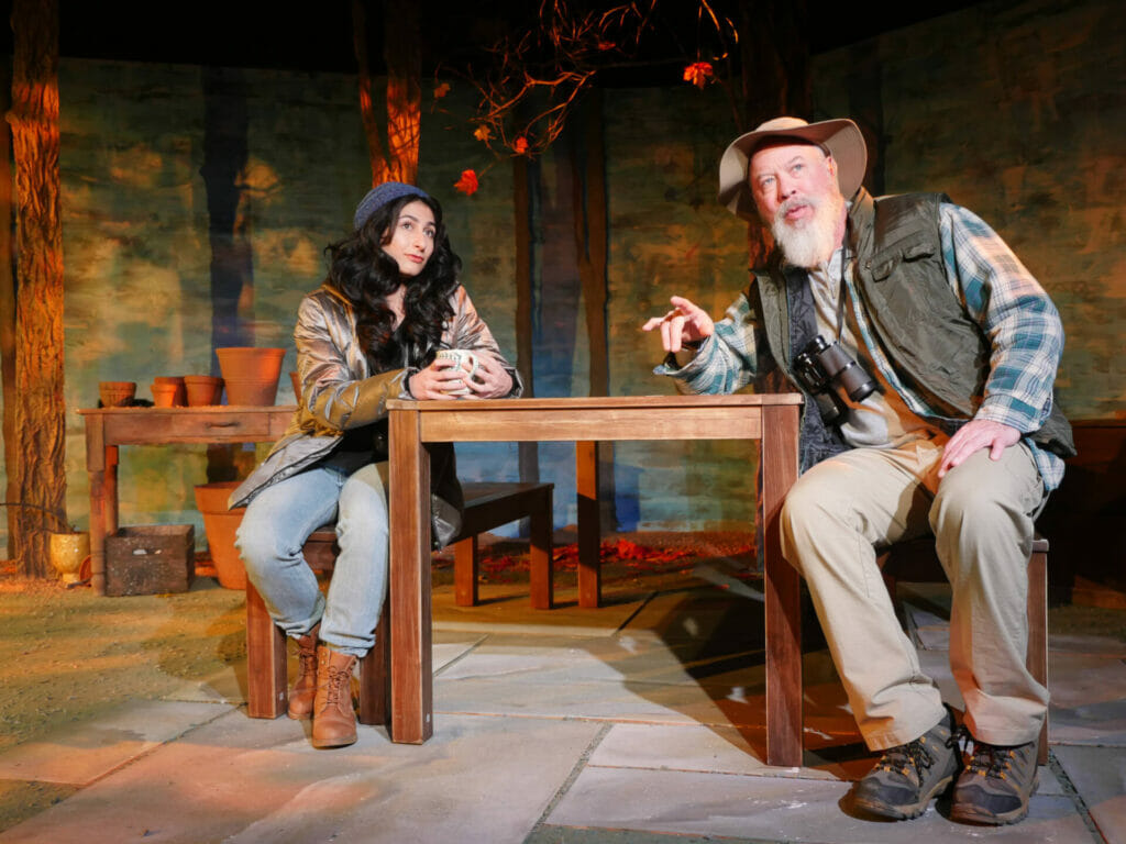 John (played by Mike Sears) is a birding enthusiast, while his adult daughter, Caitlyn (played by Fara Dinga), has only recently begun the hobby. The two watch the trees and skies for feathered friends while discussing – and not discussing – their lives, loves, and losses through the years. It is the pair’s chemistry and tenuous moments between the lines which lend realism to the poetic dialogue and ratchets up the stakes through each scene.