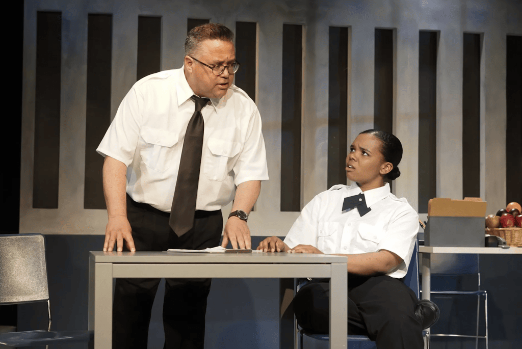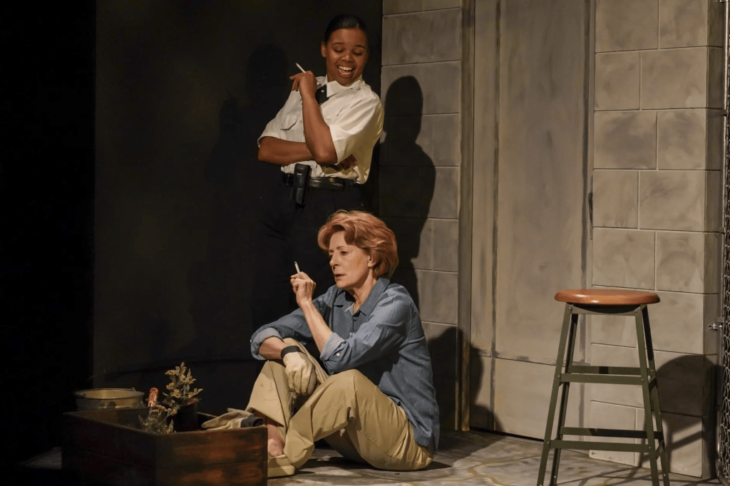 Supporting actors Jada Alston Owens and Richard Trujillo, who play Guard #1 and Guard #2, are wholly present. The two prison guards spend much of the production looking out toward the audience – but see a visitor’s room full of potential danger. Their unspoken reactions – color rising in Trujillo’s cheeks or a flicker across Alston Owens’ resting face – keep the stark room ill at ease.