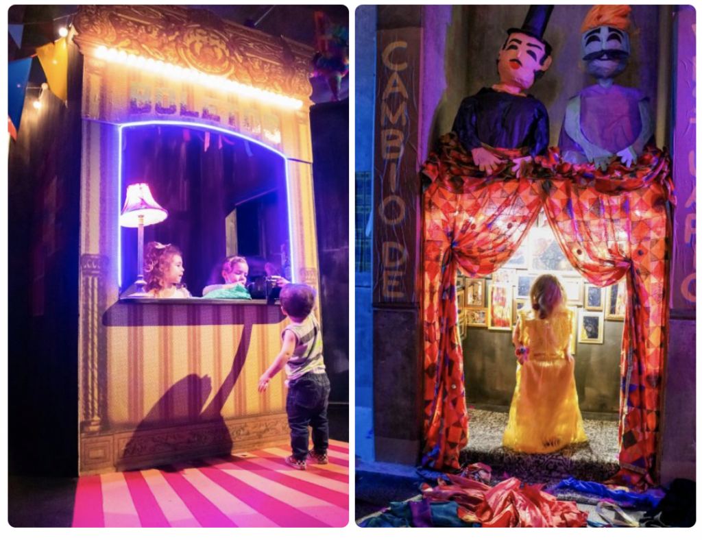 As a mother, my wonder began as wondering if I would fit into a pint-sized ticket booth with my child, followed by an unexpected delight to follow him through a hidden tunnel found within. My four-year-old son marveled at the chance to handle props and puppets he would usually be forbidden from grabbing. It was a welcome change for us both not to stop his natural desire to touch, flick, and fiddle and instead join alongside. Teatro Piñata makes everyone a player; a masterful execution of an entirely enveloping experience that entrances both children and grown-ups alike.