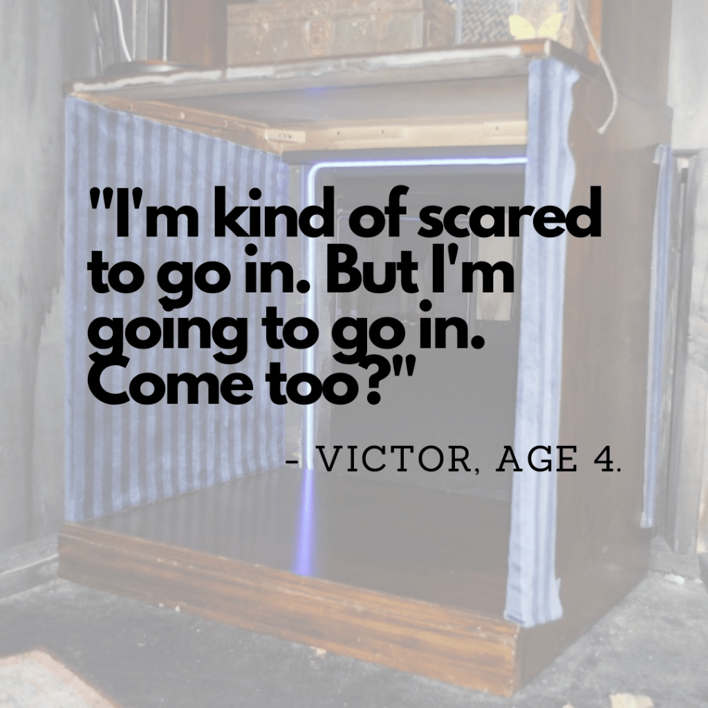 Teatro Pinata accomplishes every definition of wonder in engaging my son (and me!) in a behind-the-curtains experience. Inspired by traveling theatre caravans of yore, the on-and-off-stage magic of plays, and – of course – pinatas, families are invited to wonder what secrets lay hidden backstage and to imagine their own stories.
