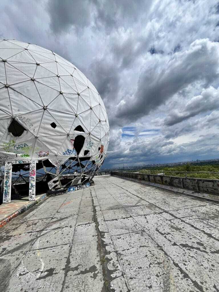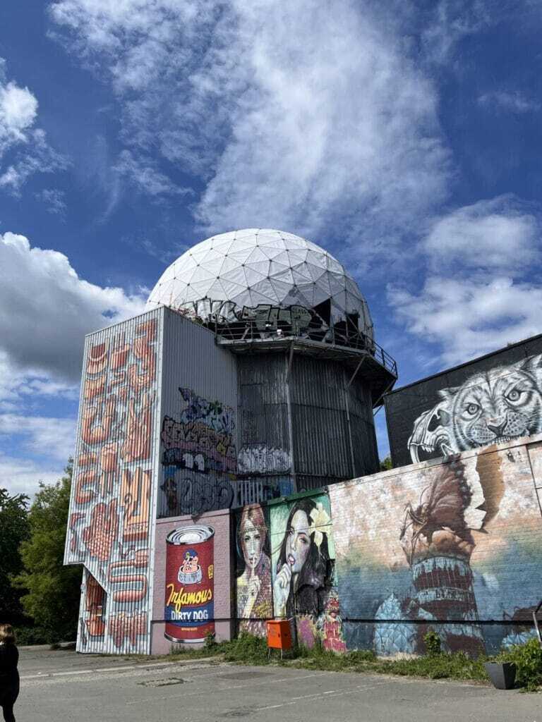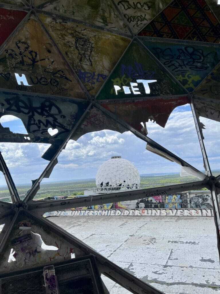 Berlin is flat as a pancake. As a San Diegan I’m used to hills and canyons. In Berlin, I never know where I am in the various neighborhoods (or Kiez, as the Berliners say), because I lack the overview. Fortunately, a non-natural mountain named Teufelsberg, or Devil’s Mountain exists. It is only 120 meters or 360 feet tall and it was created by piling up Berlin’s rubble of World War II in the years between 1950 and 1972. The Allies used it as a listening station during the Cold War, between 1963 and 1994 to intercept Stasi communications in East Berlin. This is where spies listened to spies.