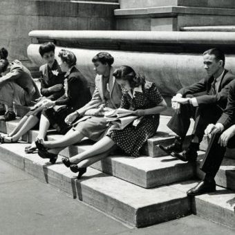 Trailblazing father of candid photojournalism, Alfred Eisenstaedt (1898-1995) said he preferred carrying his small leica camera at stomach level as he snapped some of the most recognizable images of the 20th century–discretely. Working with almost no equipment, he sat stony face and unassuming as he captured moments like “V-J Day in Times Square” (Life, 1945); the famous photo of a jubilantly flirty sailor kissing a semi-compliant nurse.