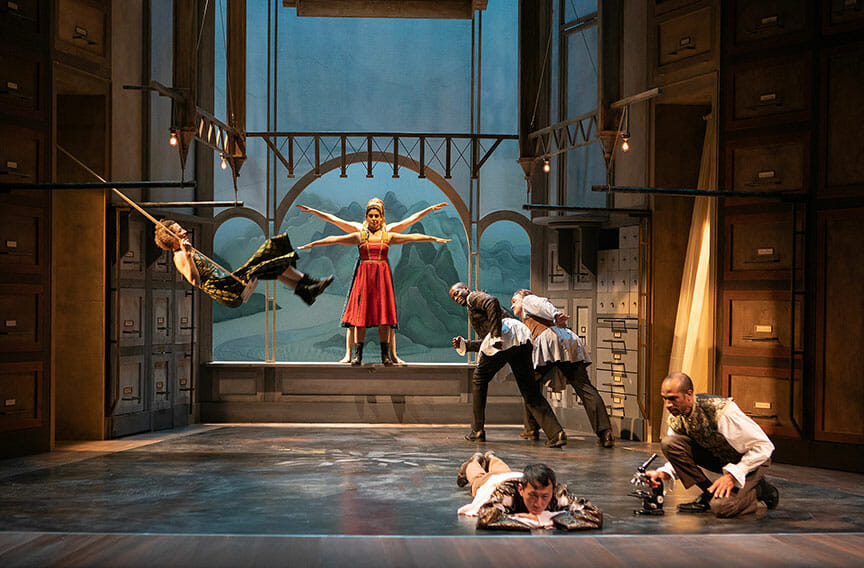 Theatre is a fitting medium to relay the thoughts of Da Vinci, as the collaborative art form brings together experts in light, sound, art, construction, design, and human movement. Writer and director Mary Zimmerman originally produced this work in 1993 to rave reviews. Nearly three decades later, she amplifies it with the power of modern technology. The 90-minute run abounds in gorgeous tableaus and scenic wonder, supported exquisitely by lighting designer T.J. Gerckens.