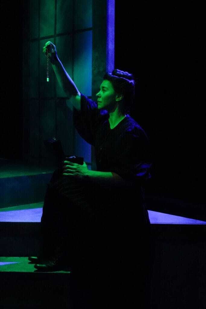 Kym Pappas: Obviously Lauren Gunderson, our playwright, she is basing the play off of a real historical moment, right? But we don’t know the kind of conversations that they had outside of the letters that we’ve seen between the two of them. So, I’m sure she has taken some liberties in her writing. But we meet Marie at what I would consider probably the lowest period in her life, and I know if you’ve read the description of the play, or even just in the description that’s on the website, Marie has had an affair with another scientist, and it came out publicly in the newspapers. So, the community just completely drug her through the coals in that moment.