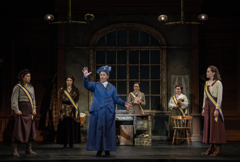 National theatrical tours are a bit of a magic trick. They promise a Broadway experience without the pilgrimage to Manhattan’s theatre district. But, like enjoying sleight of hand, one must admit reality to respect the craft. The show in San Diego, Miami, or Omaha will not be the same as the one in New York. And that tension is evident in SUFFS: The Musical, the current tour in Broadway San Diego’s 48th Season.