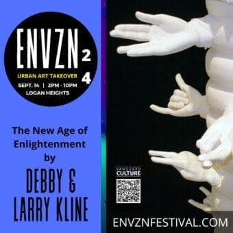 The Age of Enlightenment is an expansive 3-D printed art installation featuring a series of 8′ columns that explores themes of religion and conflict in a whimsical, tongue-in-cheek way. Originally crafted from ceramic using commercially available molds, this colonnade juxtaposes sacred motifs with images of movie stars, bunny rabbits, and Disney characters. The installation evokes the atmosphere of a visit to a holy shrine, inviting viewers to reflect on the interplay between the sacred and the profane.