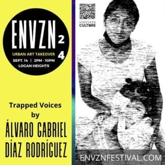 Step into a powerful immersive auditory experience that captures the testimonies of migrants, each voice emanating from a different loudspeaker, sharing their reasons for fleeing their home countries. The sound of the train, a symbol of their journey, envelops these voices, creating a haunting and immersive atmosphere. In ‘Trapped Voices’, visitors are invited to enter inside five suspended panel portraits to listen intimately to these stories. The soundscape shifts between the panels, allowing the audience to fully immerse themselves in the migrants’ experiences as they cross the Mex-USA border in search of a better future for their families.