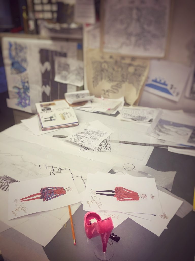 She begins a new fashion collection much as she starts on a new opera. Referring to her sketchbooks and to older collections, she starts sketching new ideas. Strong influences from nature merge with visual themes from world history, architecture, and sometimes pop culture. Her work is unapologetically feminine, whimsical, bold, at times romantic, at times futuristic, with influences from all over the world and from almost any historical era. Looking at her 2016 collection I remarked on how feminine it is, with its ample bows and long flowing dresses. “You get to be your own private princess for a day.”She chuckled. “I certainly hope so. So much goes into making them you want them to be magical.”